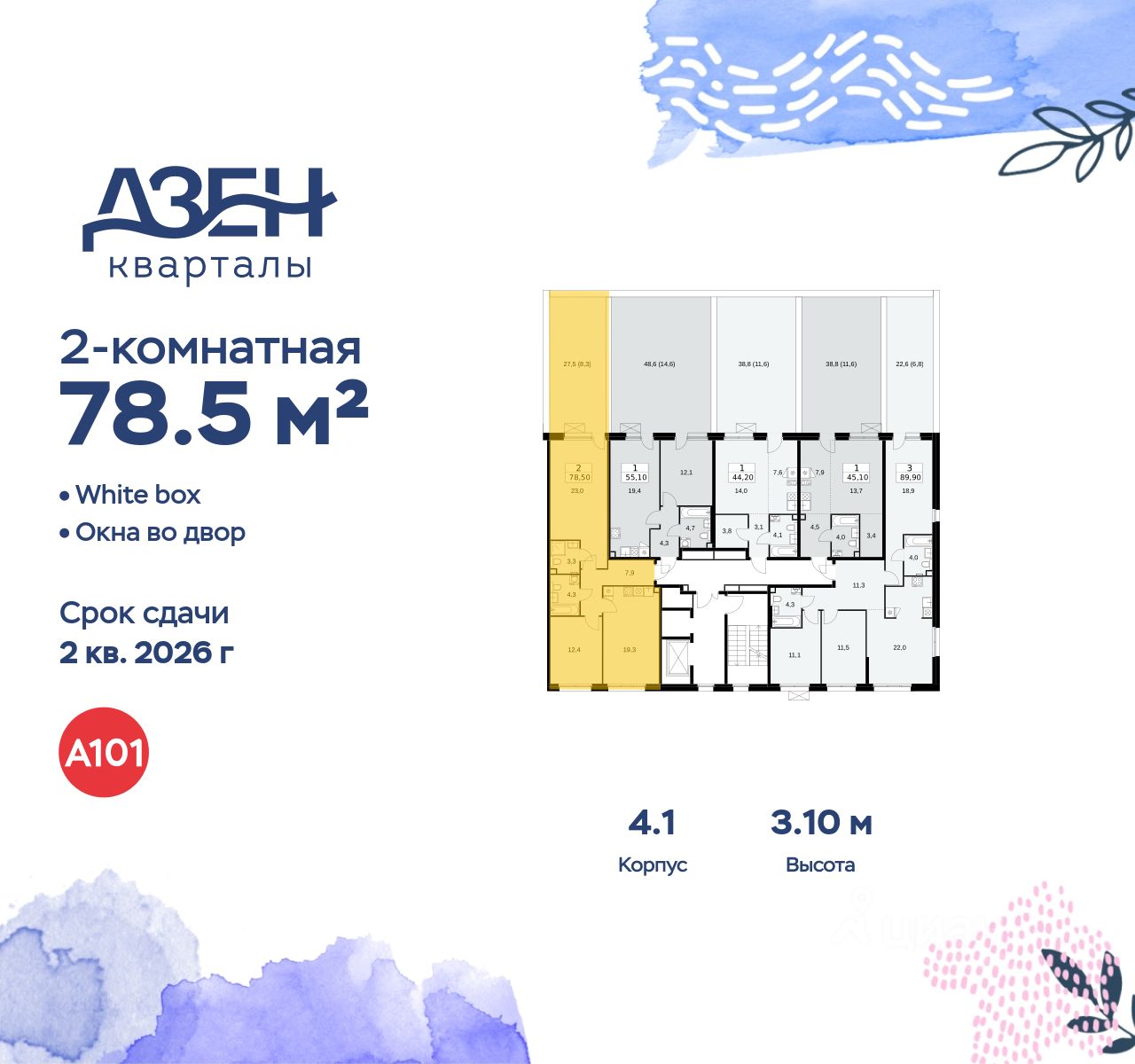 Продается двухкомнатная квартира 1 в новостройке ЖК "Дзен-кварталы" по адресу Москва, ТиНАО, Новомосковский АО, Сосенское С/П, жилой комплекс Дзен-кварталы, 4.1, район Коммунарка, Новомосковский административный округ, Москва. Общая площадь квартиры - 78.50 кв. м., этаж 2 из 12, секция 1. Тип проекта, по которому построен дом - монолит, компания-застройщик - ООО "А101". Стоимость квартиры - 24935740 Р. Срок сдачи - 2 квартал 2026.