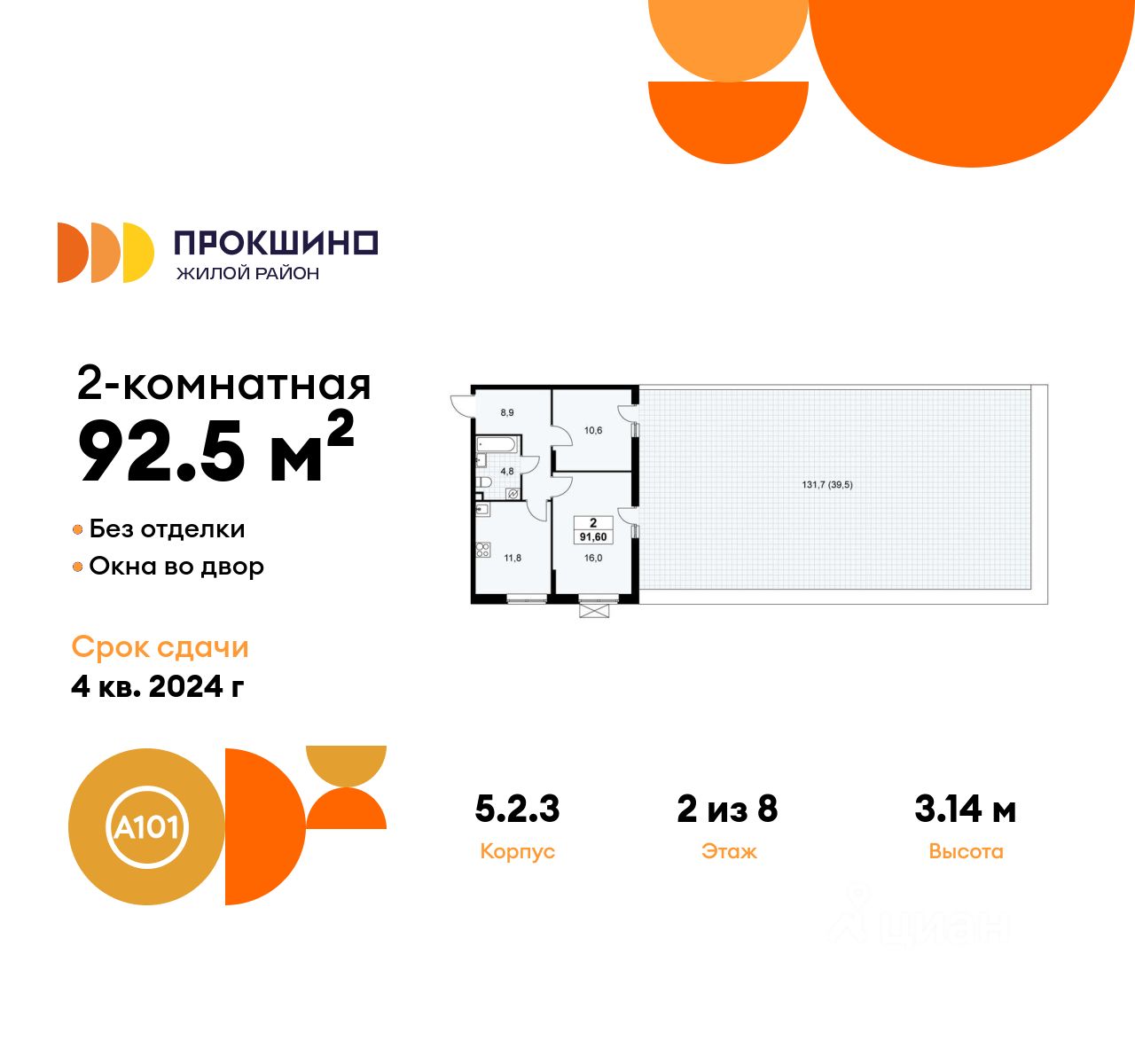 Продается двухкомнатная квартира 518 в новостройке Жилой квартал "Прокшино" по адресу Москва, ТиНАО, Новомосковский АО, Сосенское С/П, жилой комплекс Прокшино, 5.2.3, район Коммунарка, Новомосковский административный округ, Москва. Общая площадь квартиры - 92.50 кв. м., этаж 2 из 8, секция 5. Тип проекта, по которому построен дом - монолит, компания-застройщик - ООО "А101". Стоимость квартиры - 29097725 Р.