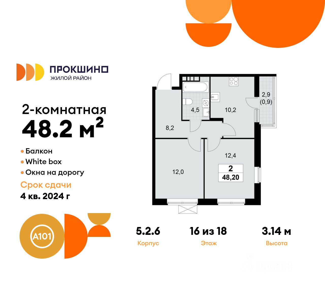 Продается двухкомнатная квартира 1090 в новостройке Жилой квартал "Прокшино" по адресу Москва, ТиНАО, Новомосковский АО, Сосенское С/П, жилой комплекс Прокшино, 5.2.6, район Коммунарка, Новомосковский административный округ, Москва. Общая площадь квартиры - 48.20 кв. м., этаж 16 из 18, секция 10. Тип проекта, по которому построен дом - монолит, компания-застройщик - ООО "А101". Стоимость квартиры - 24638394 Р.