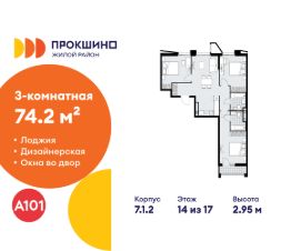 Продается трехкомнатная квартира 257 в новостройке Жилой квартал "Прокшино" по адресу Москва, ТиНАО, Новомосковский АО, Сосенское С/П, жилой комплекс Прокшино, 7.1.2, район Коммунарка, Новомосковский административный округ, Москва. Общая площадь квартиры - 74.20 кв. м., этаж 14 из 17, секция 4. Тип проекта, по которому построен дом - монолит, компания-застройщик - ООО "А101". Стоимость квартиры - 31192196 Р. Срок сдачи - 2 квартал 2027.