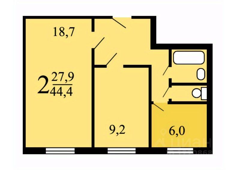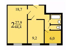 общая площадь — 44,1 м²; раздельные комнаты,с/у раздельный!