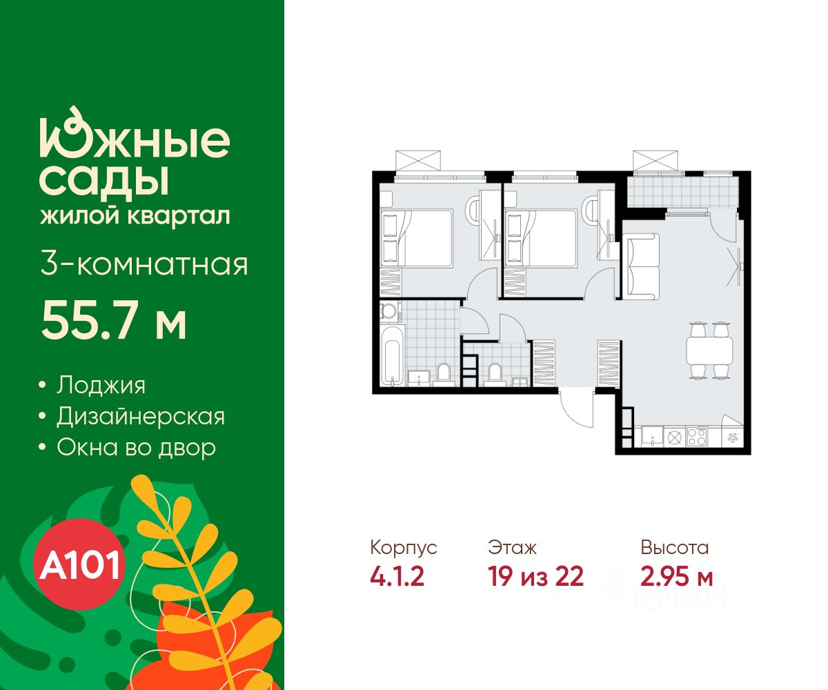 Продается трехкомнатная квартира 520 в новостройке ЖК "Южные Сады" по адресу Москва, ЮЗАО, Южное Бутово, ул. Бартеневская, д. 16. Общая площадь квартиры - 55.70 кв. м., этаж 19 из 22, секция 5. Тип проекта, по которому построен дом - монолит, компания-застройщик - ООО "А101". Стоимость квартиры - 23628497 Р. Срок сдачи - 2 квартал 2027.