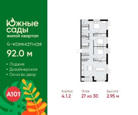 Продается четырехкомнатная квартира 394 в новостройке ЖК "Южные Сады" по адресу Москва, ЮЗАО, Южное Бутово, ул. Бартеневская, д. 16. Общая площадь квартиры - 92.00 кв. м., этаж 27 из 30, секция 4. Тип проекта, по которому построен дом - монолит, компания-застройщик - ООО "А101". Стоимость квартиры - 29072000 Р. Срок сдачи - 2 квартал 2027.
