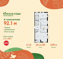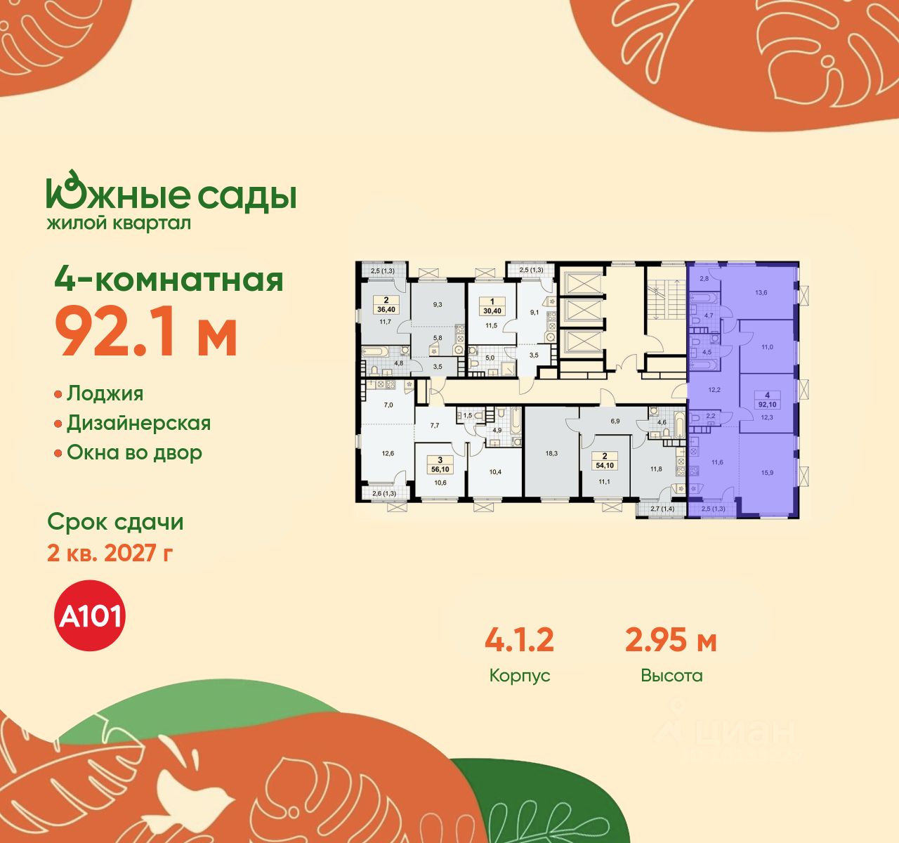 Продается четырехкомнатная квартира 379 в новостройке ЖК "Южные Сады" по адресу Москва, ЮЗАО, Южное Бутово, ул. Бартеневская, д. 16. Общая площадь квартиры - 92.10 кв. м., этаж 24 из 30, секция 4. Тип проекта, по которому построен дом - монолит, компания-застройщик - ООО "А101". Стоимость квартиры - 33412959 Р. Срок сдачи - 2 квартал 2027.