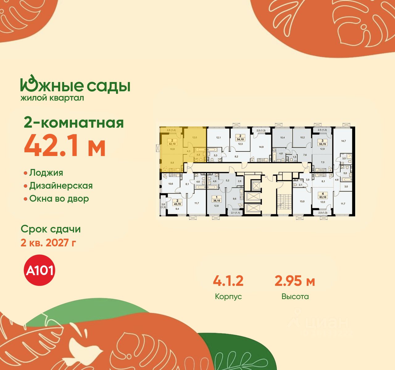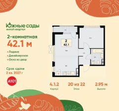 Продается двухкомнатная квартира 524 в новостройке ЖК "Южные Сады" по адресу Москва, ЮЗАО, Южное Бутово, ул. Бартеневская, д. 16. Общая площадь квартиры - 42.10 кв. м., этаж 20 из 22, секция 5. Тип проекта, по которому построен дом - монолит, компания-застройщик - ООО "А101". Стоимость квартиры - 20445023 Р. Срок сдачи - 2 квартал 2027.