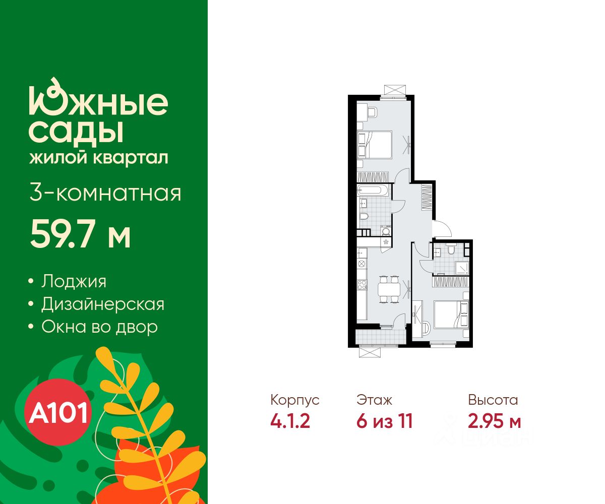 Продается трехкомнатная квартира 232 в новостройке ЖК "Южные Сады" по адресу Москва, ЮЗАО, Южное Бутово, ул. Бартеневская, д. 16. Общая площадь квартиры - 59.70 кв. м., этаж 6 из 11, секция 3. Тип проекта, по которому построен дом - монолит, компания-застройщик - ООО "А101". Стоимость квартиры - 24337899 Р. Срок сдачи - 2 квартал 2027.