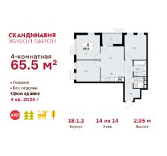 Продается четырехкомнатная квартира 176 в новостройке Жилой район "Скандинавия" по адресу Москва, ТиНАО, Новомосковский АО, Сосенское С/П, Коммунарка пос., жилой комплекс Скандинавия, 18.1.2, район Коммунарка, Новомосковский административный округ, Москва. Общая площадь квартиры - 65.50 кв. м., этаж 14 из 14, секция 2. Тип проекта, по которому построен дом - монолит, компания-застройщик - ООО "А101". Стоимость квартиры - 25802415 Р. Срок сдачи - 4 квартал 2026.