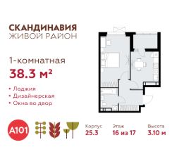 Продается однокомнатная квартира 444 в новостройке Жилой район "Скандинавия" по адресу Москва, ТиНАО, Новомосковский АО, Коммунарка пос., жилой комплекс Скандинавия, 25.3, район Коммунарка, Новомосковский административный округ, Москва. Общая площадь квартиры - 38.30 кв. м., этаж 16 из 17, секция 3. Тип проекта, по которому построен дом - монолит, компания-застройщик - ООО "А101". Стоимость квартиры - 23151201 Р. Срок сдачи - 2 квартал 2026.