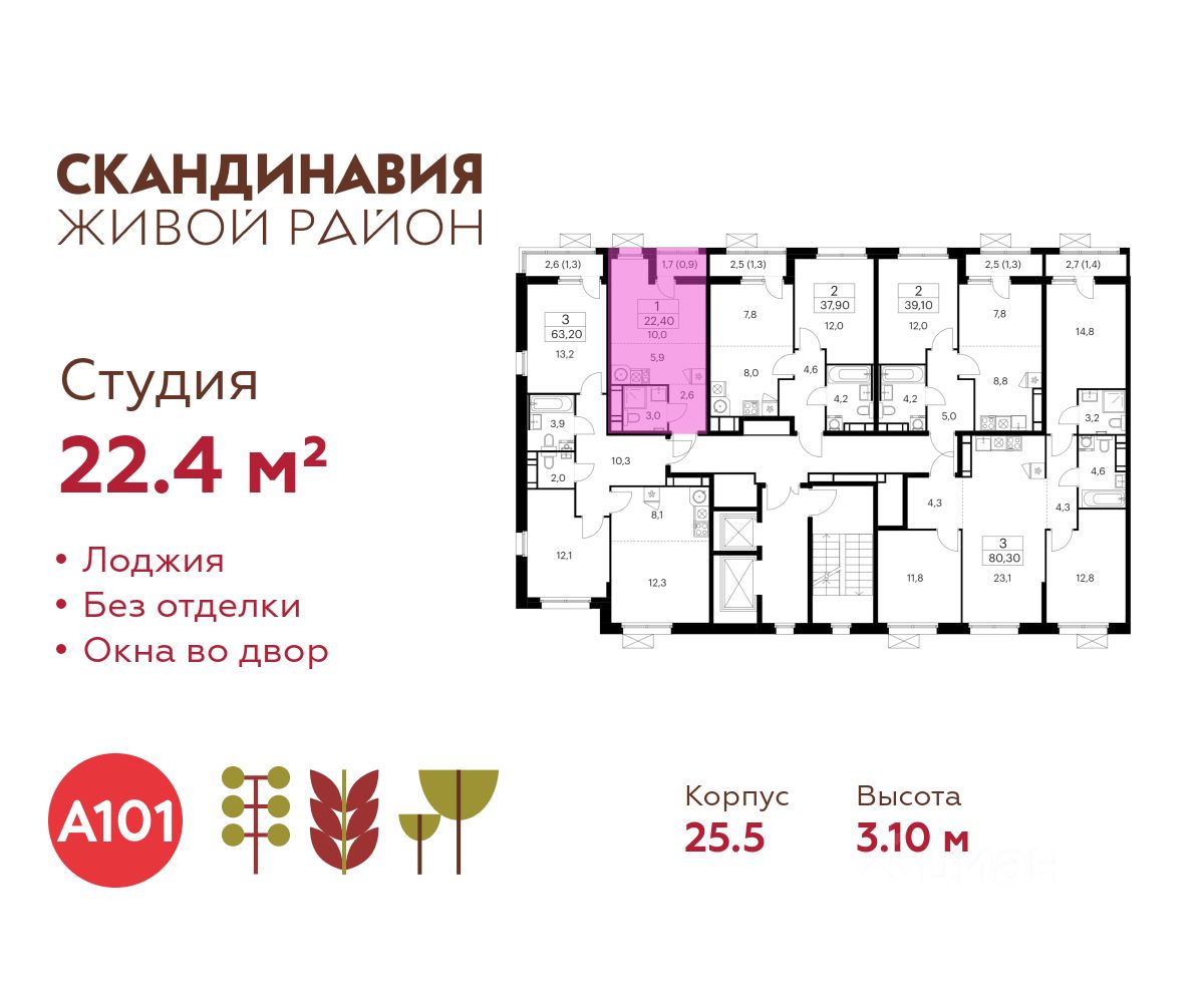 Продается студия 827 в новостройке Жилой район "Скандинавия" по адресу Москва, ТиНАО, Новомосковский АО, Коммунарка пос., жилой комплекс Скандинавия, 25.5. Общая площадь квартиры - 22.40 кв. м., этаж 16 из 17, секция 9. Тип проекта, по которому построен дом - монолит, компания-застройщик - ООО "А101". Стоимость квартиры - 13839168 Р. Срок сдачи - 2 квартал 2026.