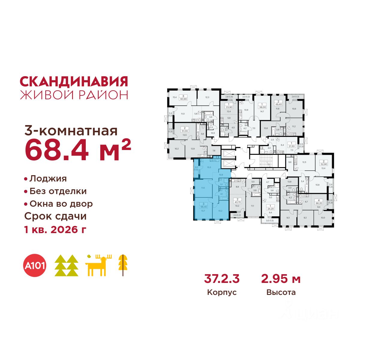Продается трехкомнатная квартира 522 в новостройке Жилой район "Скандинавия" по адресу Москва, ТиНАО, Новомосковский АО, Сосенское С/П, Коммунарка пос., жилой комплекс Скандинавия, 37.2.3, район Коммунарка, Новомосковский административный округ, Москва. Общая площадь квартиры - 68.40 кв. м., этаж 15 из 18, секция 3. Тип проекта, по которому построен дом - монолит, компания-застройщик - ООО "А101". Стоимость квартиры - 26034408 Р. Срок сдачи - 1 квартал 2026.
