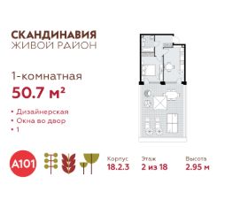 Продается однокомнатная квартира 279 в новостройке Жилой район "Скандинавия" по адресу Москва, ТиНАО, Новомосковский АО, Коммунарка пос., жилой комплекс Скандинавия, 18.2.3, район Коммунарка, Новомосковский административный округ, Москва. Общая площадь квартиры - 50.70 кв. м., этаж 2 из 18, секция 5. Тип проекта, по которому построен дом - монолит, компания-застройщик - ООО "А101". Стоимость квартиры - 23986201 Р. Срок сдачи - 1 квартал 2027.
