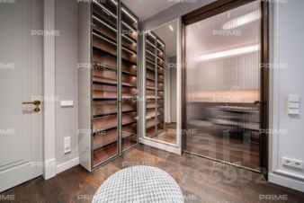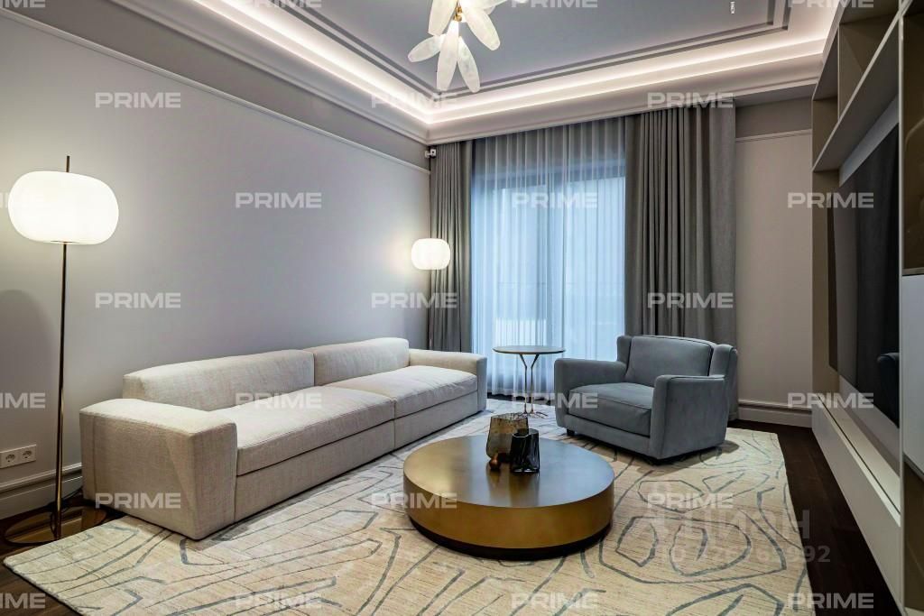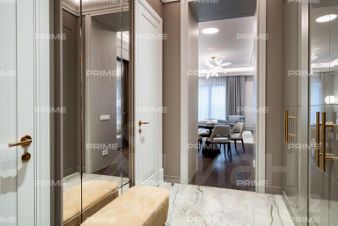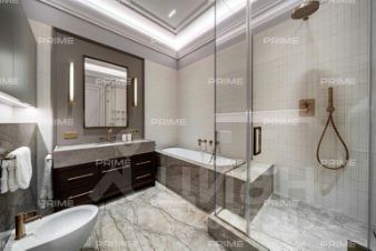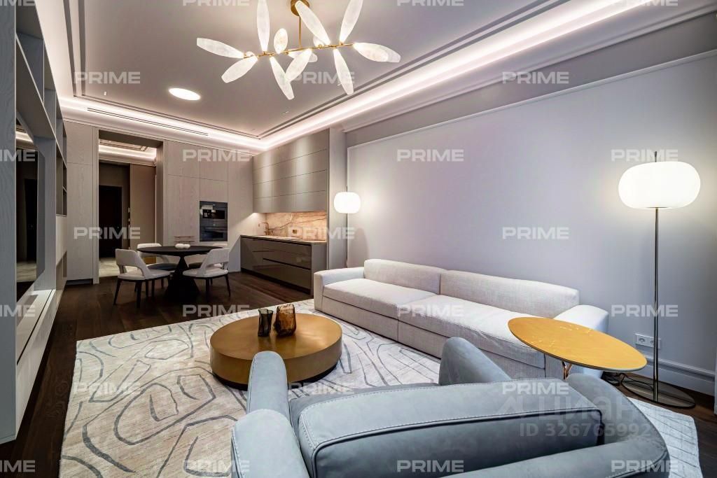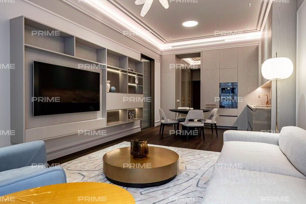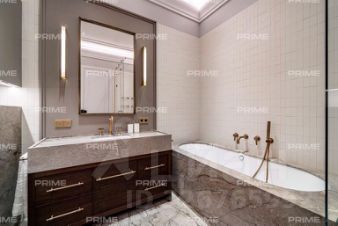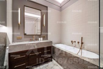 Лот отличается эксклюзивным дизайнерским ремонтом "под ключ" и высококачественной мебелью. В отделке квартиры повсеместно использован натуральный мрамор, подчеркивающий изысканность интерьера. В гостиной установлен итальянский диван Poliform, создающий атмосферу утонченности. Центром внимания служит известный дизайнерский стол с лапками Cassina Trassia by Meret Oppenheim. А также дизайнерская люстра Giopato&Coombes Gem Branch Chandelier, придающая пространству уникальность и шарм.