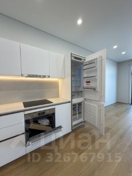 Квартира уже оборудована бытовой техникой: холодильник, духовой шкаф, варочная панель, вытяжка, посудомоечная машина. Установлена система кондиционирования. Теплые полы в зоне керамогранита. Большое количество мест для хранения.