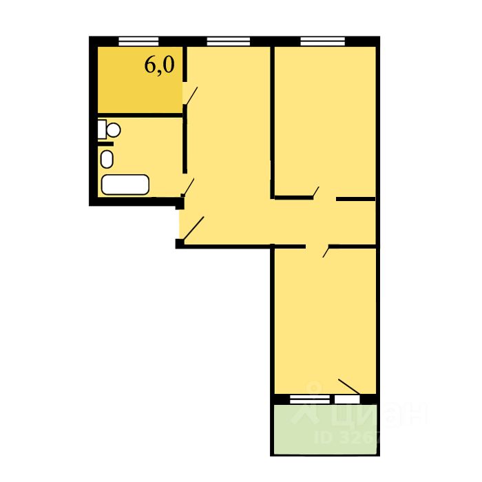 Общая с балконом 58 кв.м., без балкона - 56,8 кв.м., кухня 5,7 кв.м., комнаты 11,4 кв.м., 12 кв.м., 19,6 кв.м., совмещенный санузел.