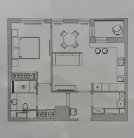 Удобная планировка с просторным санузлом и гардеробной (фото по запросу), так же в коридоре и комнате имеется встроенный шкаф для одежды. Выполнен евроремонт из качественных материалов, покрытие стен - декоративная штукатурка, в гостиной установлен кондиционер, в санузле установлен теплый пол, кухонный гарнитур с современной техникой, большой угловой диван на 5 спальных мест, все полностью остается в квартире. Окна выходят на улицу, на солнечную сторону. Приличные и культурные соседи.
