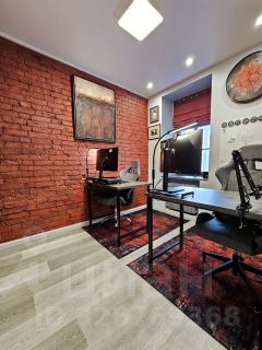 Кирпичные стены в кабинете и кухне-гостиной — это оригинальная очищенная и отреставрированная кирпичная кладка.