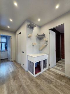 Квартира изначально спроектирована для комфортного проживания с домашними любимцами: встроенный ящик под лоток в туалете, окрашенные прочной краской стены, на полу единым контуром без порогов уложен качественный кварцвинил, который не боится влаги и когтей. Предусмотрено отдельное место под кошачий уголок и собачий домик.