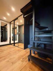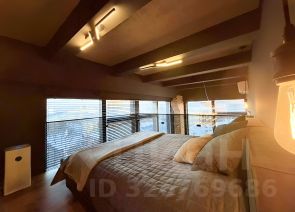 Планировка: свободная. Просторная кухня-гостиная с огромными панорамными окнами — в них открывается вид на городскую архитектуру, солнечная сторона. Второй этаж — приватная зона со спальными местами и рабочей зоной.