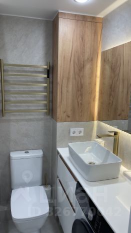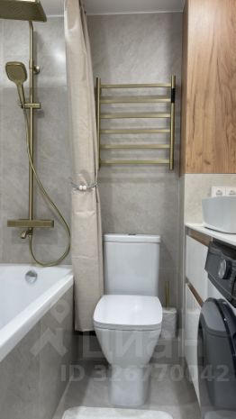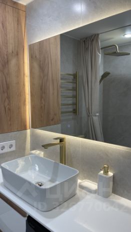 Качественная сантехника, ванна, стиральная машина, электрический полотенцесушитель, большая столешница с тумбой, зеркало с подсветкой, скрытый карниз, вытяжка, проточный водонагреватель. Всё новое, аккуратное и современное.