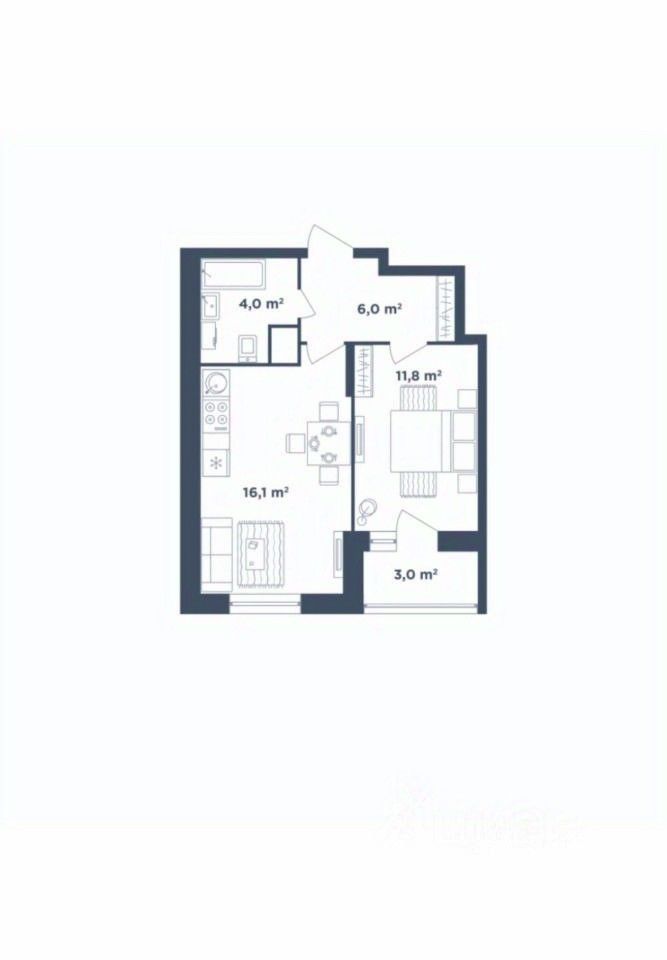 Общая площадь квартиры составляет 40 квадратных метров, из которых 16 кв м жилой площади и 12 кв м кухни. Высота потолков — 2,8 метра, что создаёт ощущение простора и свободы.