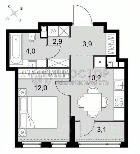 1-я квартира 36 кв. м без отделки, с теплой лоджией, высота потолков 3,15.
