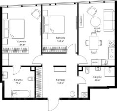 В продаже 2-комнатная квартира площадью 79.00 м² на 75-м этаже.