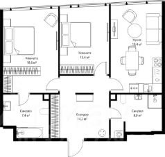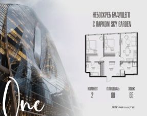 В продаже 2-комнатная квартира площадью 80.00 м² на 65-м этаже.