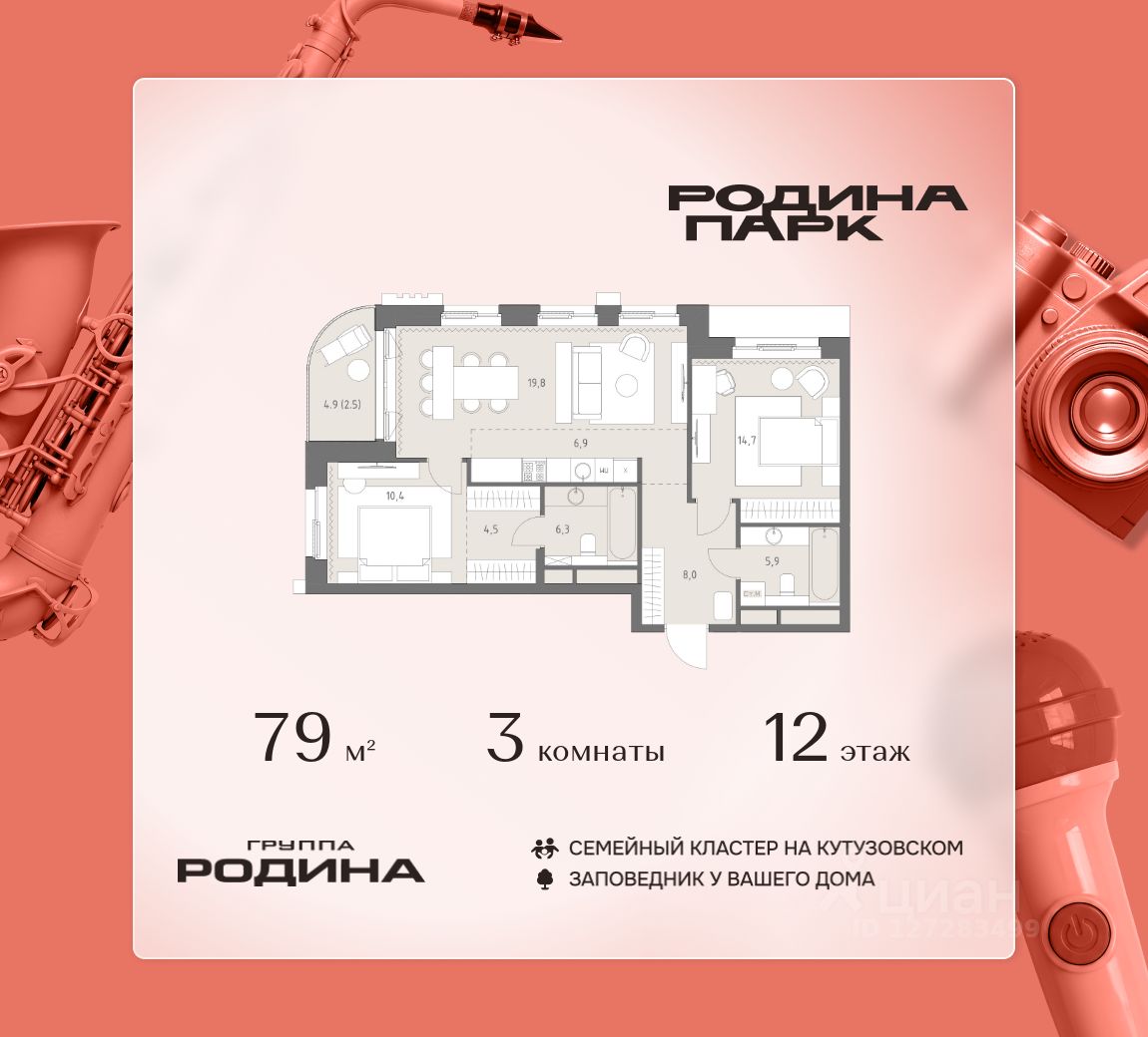 В жилом кластере Родина Парк рядом с природным заказником Долина реки Сетунь продаётся 3-комнатная квартира.
