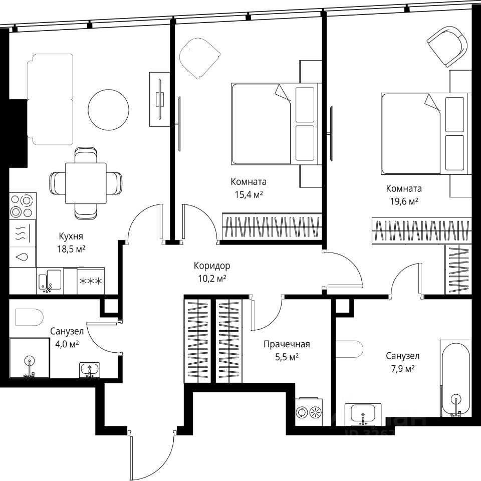 В продаже 2-комнатная квартира площадью 81.10 м² на 75-м этаже.