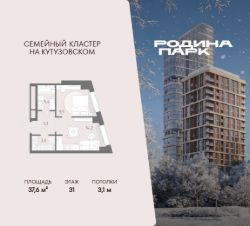 В жилом кластере Родина Парк рядом с природным заказником Долина реки Сетунь продаётся квартира студия.