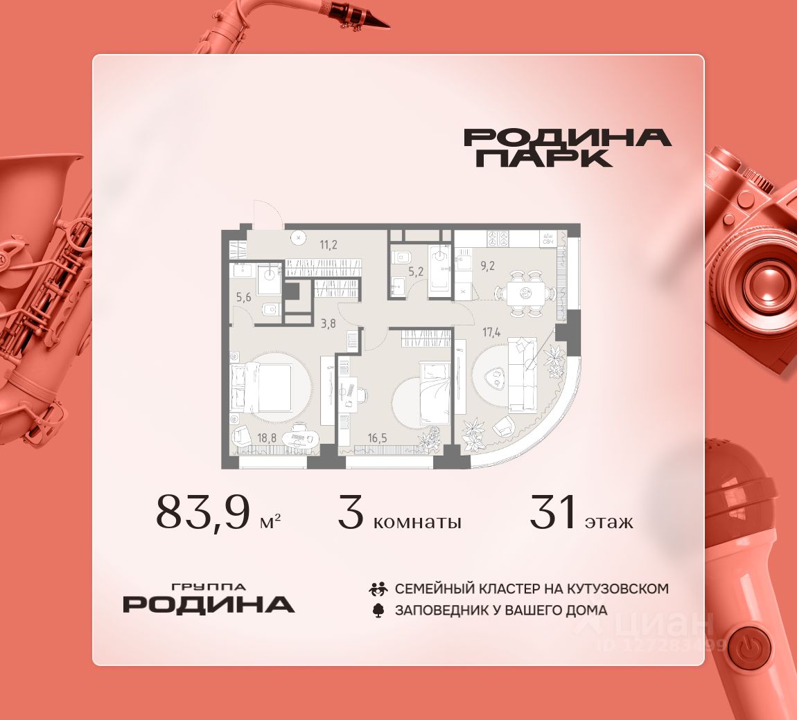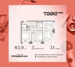 В жилом кластере Родина Парк рядом с природным заказником Долина реки Сетунь продаётся 3-комнатная квартира.