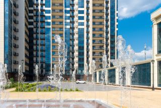 Развитая собственная инфраструктура: подземный паркинг, здание фитнес-центра с бассейнами, объекты торговли и сферы услуг.