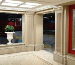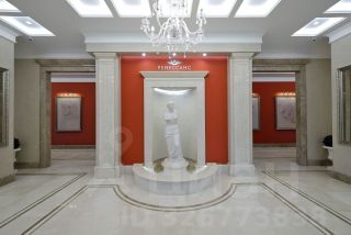 Роскошный интерьер лобби: натуральный испанский мрамор, вертикальный фонтан, репродукции картин эпохи Возрождения, великолепная итальянская люстра ручной работы с подвесками из хрусталя CutCrystal и муранского стекла, иранские ковры, дизайнерская мебель. Лифты премиум-класса ThyssenKrupp.