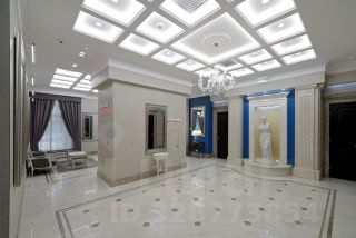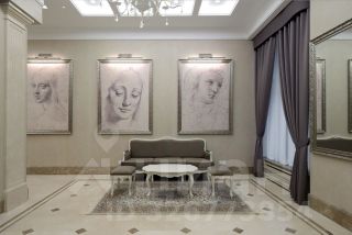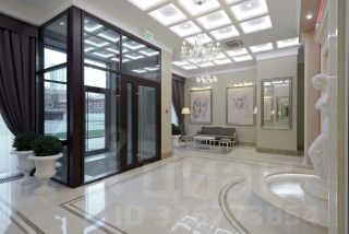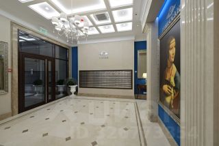 Роскошный интерьер лобби: натуральный испанский мрамор, вертикальный фонтан, репродукции картин эпохи Возрождения, великолепная итальянская люстра ручной работы с подвесками из хрусталя CutCrystal и муранского стекла, иранские ковры, дизайнерская мебель. Лифты премиум-класса ThyssenKrupp.