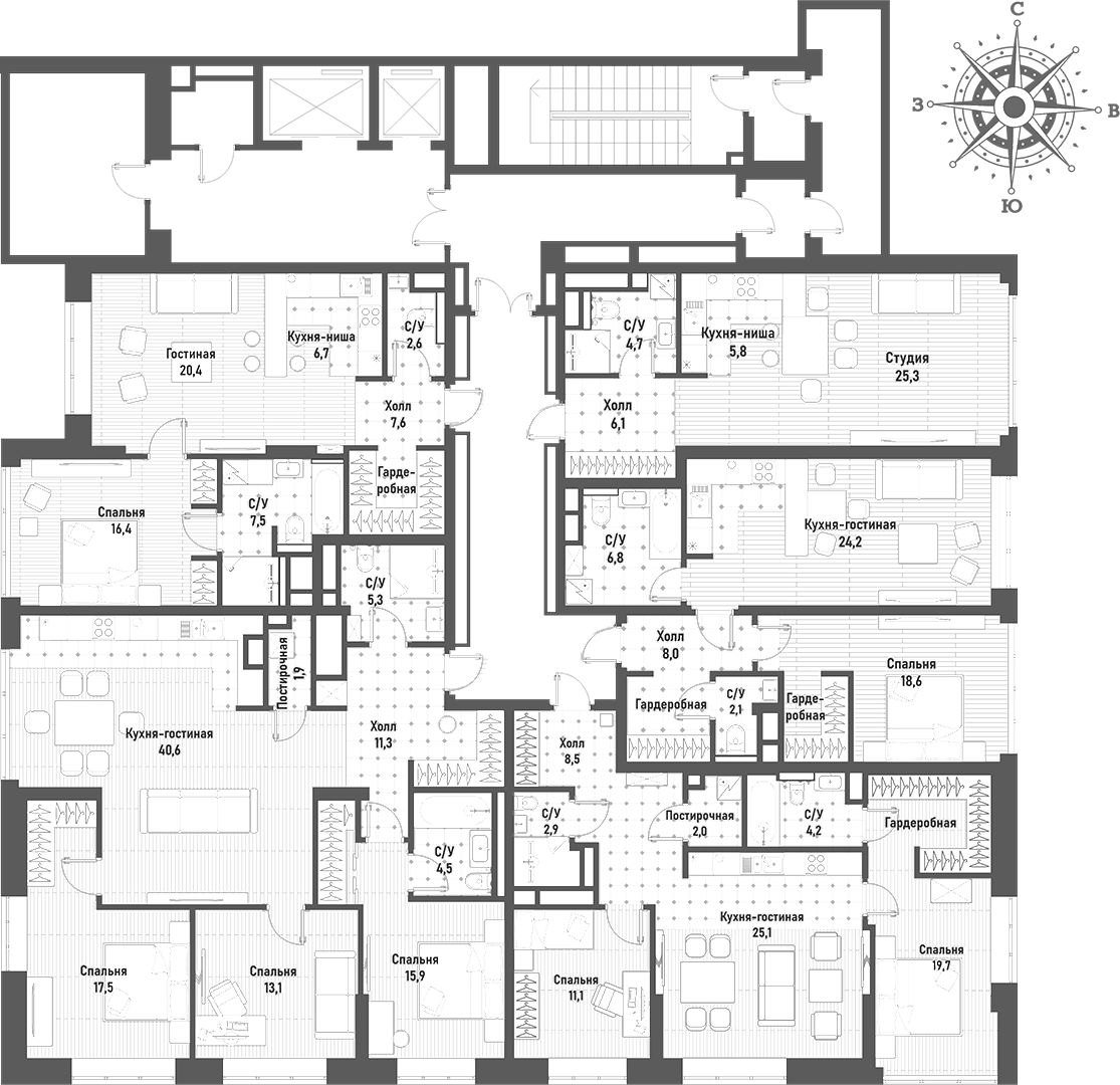 Из панорамных окон премиального бренда Schuco открываются завораживающие виды на сияющие в лучах солнца купола церквей и храмов, зелень легендарного парка "Сокольники" и национального парка "Лосиный остров", излучины реки Яузы с величественной гранитной набережной, старинные здания, среди которых дворец императрицы Елизаветы Петровны, небоскребы "Москва-Сити", Останкинскую телебашню и приватную, охраняемую территорию комплекса с концепцией "двор без машин", изысканным ландшафтным дизайном, богатой коллекцией растений, пространствами для отдыха с роскошным фонтаном с красивой подсветкой, элегантной перголой, большими шахматами, детскими городками и спортивными площадками.