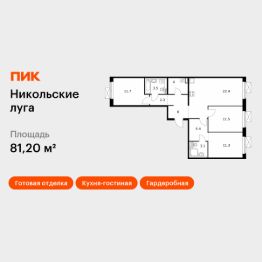 Продаётся 3-комн. квартира площадью 81,2 кв.м на 2 этаже 9 этажного дома (Корпус 1.1, Секция 3) проекта ПИК Никольские луга. Светлый просторный подъезд на уровне земли, функциональная планировка, большие окна, c отделкой.