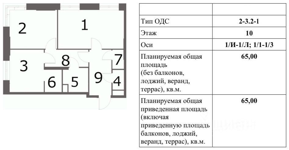 3-комн.апартаменты, 65 м2, окна выходят на две стороны - Юго-Запад.
