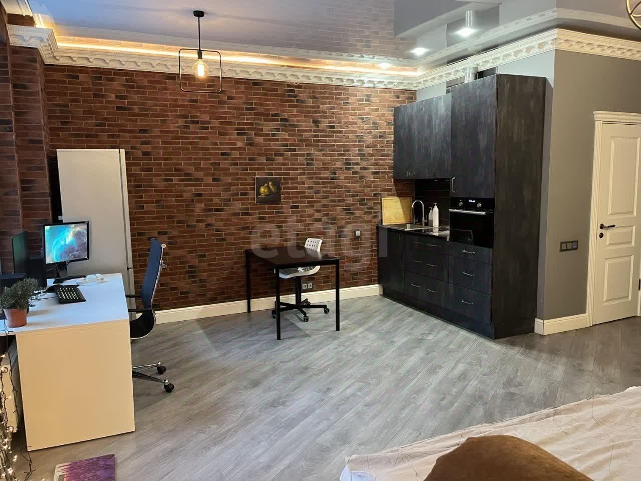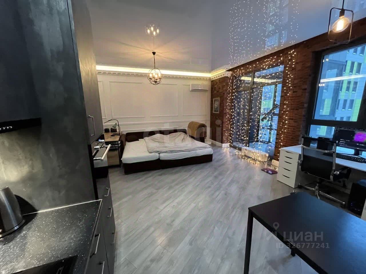 Объект предлагает продуманное пространство с качественной отделкой и панорамными окнами. Планировка включает функциональную зону отдыха с диваном-кроватью и кухню, оборудованную индукционной плитой, духовым шкафом, холодильником и местом для обеденного стола. Для хранения вещей предусмотрен большой встроенный шкаф. Отдельный балкон с глубоким шкафом выходит во двор, а в санузле установлена душевая кабина, стиральная машина и водонагреватель.