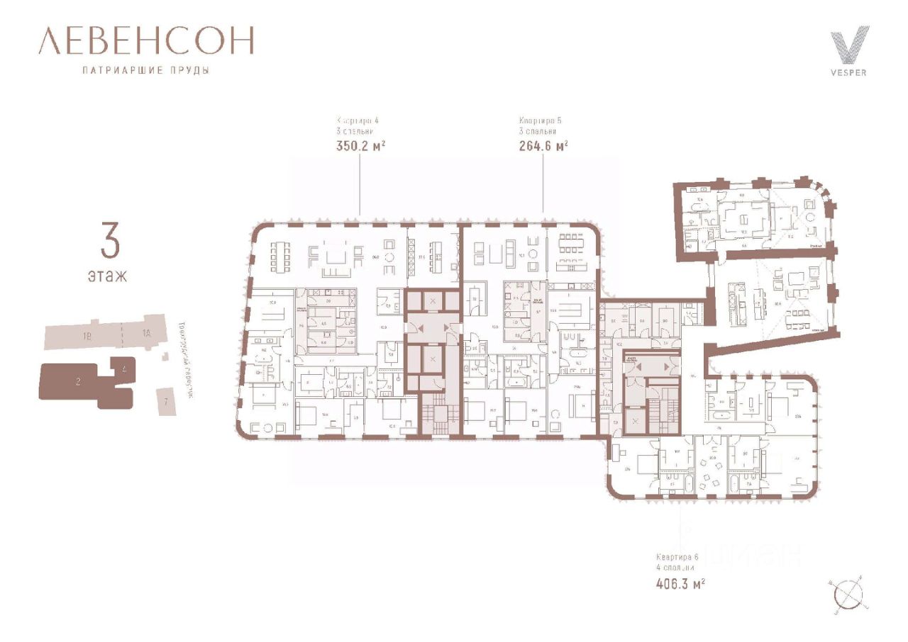 Продается квартира с премиальной отделкой на 3-м этаже общей площадью 495,9 кв.м. с 4-мя спальнями и кухней-гостиной