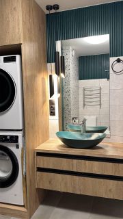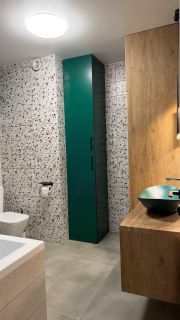 Просторный совмещённый санузел с продуманной встроенной системой хранения.
