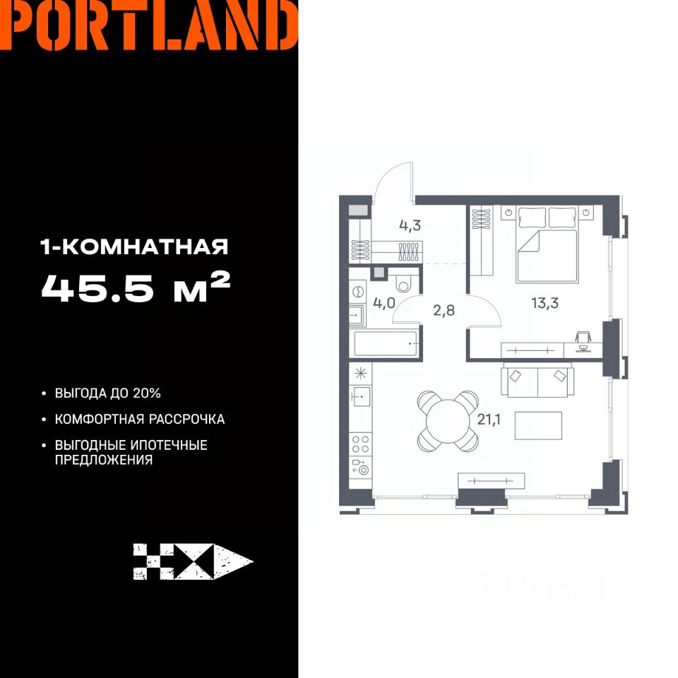 Цены указаны с условием 100% оплаты и стандартной ипотеки. Продаётся 1-к. квартира, 10 этаж в жилом комплексе бизнес-класса Portland от девелопера FORMA. ЖК расположен на берегу Москвы-реки в северной части района Печатники в акватории Южного речного порта. Основные преимущества проекта: • Самая протяженная береговая линия реки в Москве 13 км. • Вид на реку в сторону запада панорамные окна на самое широкое водное пространство Москва-реки (900 м) и на закат. • 95% квартир с видом на воду. • К Portland не примыкает крупных автомагистралей - отсутствие фонового шума дорог. • В перспективе ближайших 11 лет на территории района запланировано грандиозное преобразование и комплексное развитие. • Собственная набережная длиной 412 м., которая после завершения строительства сомкнется с эко-парком Печатники. • Прямой выход к воде и отсутствие проезжей части между Portland и береговой линией. • Инфраструктурное разнообразие: супермаркеты, крупные торговые центры, рестораны, кафе, фитнес-клубы, бьюти-салоны, компании сферы услуг и многое другое. • Собственная школа на 300 мест и детский сад на 275 мест. • Паркинг на 650 м/м • Транспортная вседоступность: метро, авто, велосипед, речной трамвай, канатная дорога • 15 мин. пешком до м. Печатники, 15 мин. на авто до ТТК, 20 минут на авто до Садового кольца