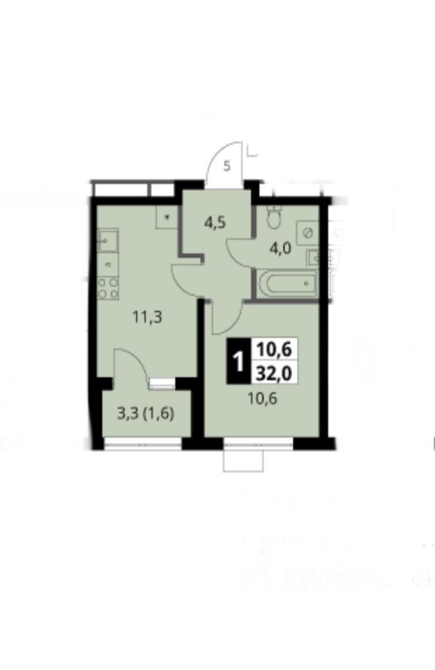 1-комнатная квартира в ЖК "1-й Ясеневский", корпус 1, секция 5, этаж 8, общей площадью с лоджией 32 кв.м., окна на северо-восток, с отделкой white box.