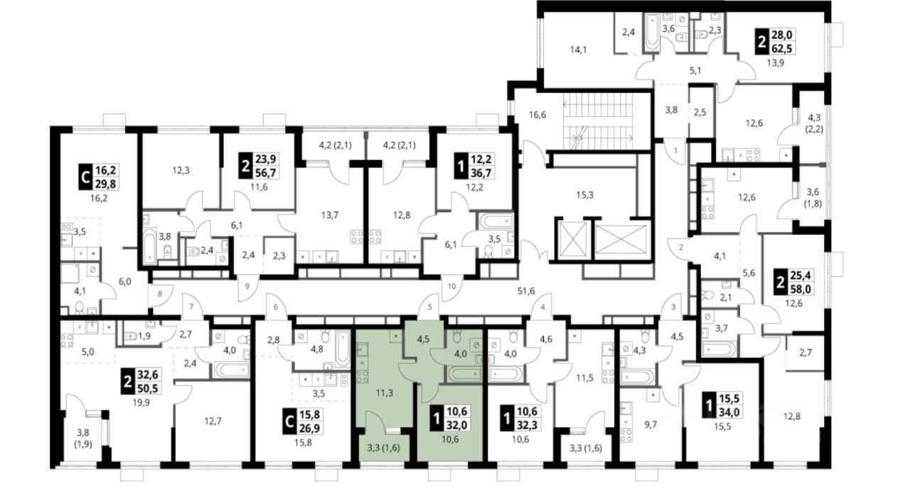 32 м²
