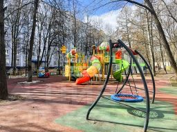 Дворовая территория у дома: детская и спортивная площадки — безопасно для детей и спорта.