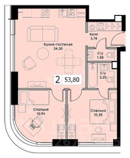 Продаётся 2-комнатная квартира общей площадью 53.80 м² с отделкой в Вайт Бокс, в современном жилом комплексе, на 49-м этаже 53 этажного дома.