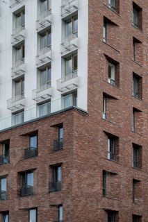 Мы создали этот проект с нуля, взяв самые лучшие решения, присущие лофтам - от высоких потолков и больших окон до свободных планировок. Здесь - нестандартная пластичная архитектура: угловое остекление, клинкерный кирпич и алюминиевые панели, сочетания разных материалов, цветов и фактур. Игра света и теней создают динамический 3D-эффект, из-за которого фасады выглядят почти как полотна ткани.