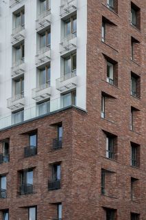 Мы создали этот проект с нуля, взяв самые лучшие решения, присущие лофтам - от высоких потолков и больших окон до свободных планировок. Здесь - нестандартная пластичная архитектура: угловое остекление, клинкерный кирпич и алюминиевые панели, сочетания разных материалов, цветов и фактур. Игра света и теней создают динамический 3D-эффект, из-за которого фасады выглядят почти как полотна ткани.