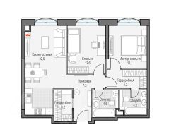 * ПРОСТОРНАЯ кухня-гостиная 21 кв.м. (с КАМИНОМ), 2 изолированные спальни по 12 кв.м. (одна - со своей ГАРДЕРОБНОЙ), 2 санузла (один - гостевой, с постирочной зоной), ШИРОКИЙ холл-прихожая с НИШЕЙ для ВМЕСТИТЕЛЬНОГО шкафа.