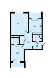 лоджия 2,1 кв.м.,