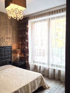 Функциональная планировка квартиры: кухня-гостиная, спальня, 1 совмещенный с/у с ванной, холл. Дизайнерская квартира. Европейский ремонт выполнен с использованием экологически чистых материалов. Красивый вид из окон во двор. Панорамное застекление.